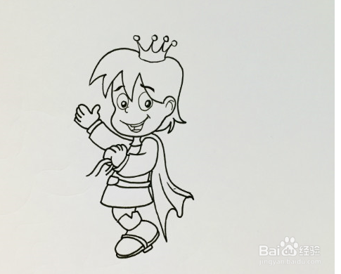 接着画出王子的脸部五官,大大的眼睛和微笑的嘴巴都画出来。