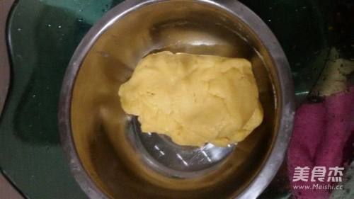 将糖、溴粉、食粉、吉士粉拌匀。加入猪油搓匀,加入生油、鸡蛋搓匀。然后加入面粉,用折叠的手法折叠,至面团光滑即可。
