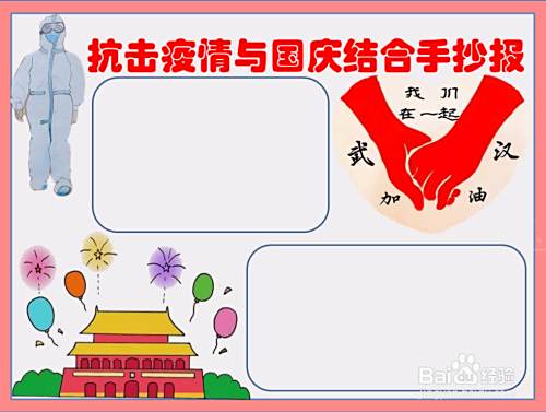 接着在空白的地方画上文本框,书写抗击疫情与国庆结合手抄报相关的文字内容.