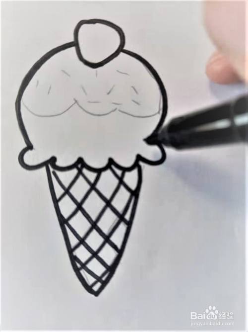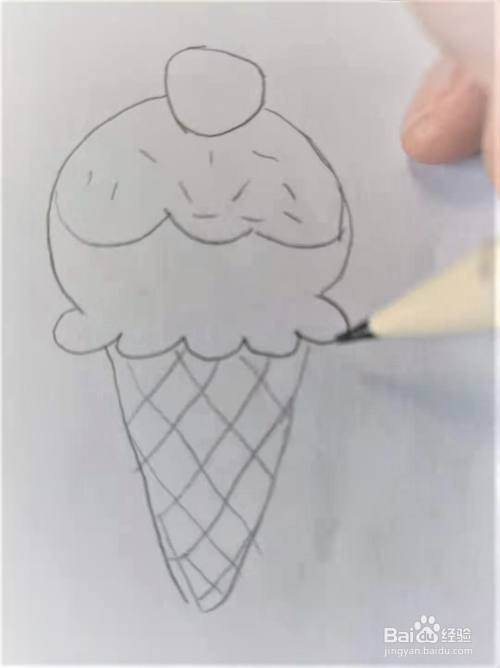 使用铅笔慢慢描画出冰淇淋的大致轮廓。