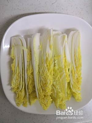 两颗娃娃菜,洗净,每颗切成六瓣。