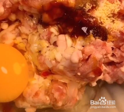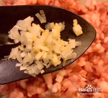 猪肉馅中加入姜末、蒜末以及葱花去腥。
