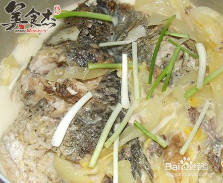 3另外起锅把煎过的鱼放入锅中,加入咸梅、酸菜、姜丝后加水,水的量以沫过鱼为佳(咸梅、酸菜都很咸了,不需要再加盐)