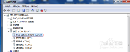 那么将智能客显的PS2母口线,对接串口转PS2公线后,再将9针孔的串口线对接一条USB转串口线(即智能客显需先对接一条串口转PS2公口线,然后再对接一条USB转串口线),USB转串口的USB一头对接到电脑,此时在电脑“设备管理”里面会产生一个新的串口,如下图所示:
