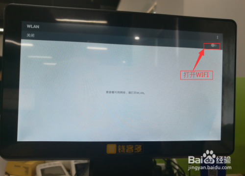 在右上角打开WIFI,然后选择店面WIFI输入密码连接,然后通过在底部上滑选择返回登陆界面,然后登陆进去,登陆进去后可使用收银软件进行收银测试。