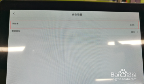选择参数设置,进入后在如下图所示中点击下拉选择9600波特率即可: