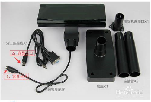 则在原客显和电脑之间的公头/母头对接处如下图的1和2,将公头和母头对接拆开,将2中的客显公头插入智能客显的母头。