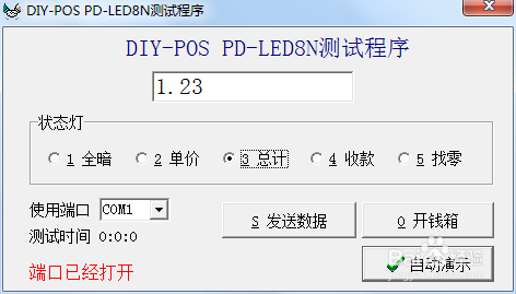 客显测试工具下载地址:https://eyun.baidu.com/s/3qXQvTrY,密码:H7E3,下载之前先将客显安装,下载打开工具后,首先先修改发送数字如1.23等,然后选择“总计”,然后先测试COM1,点击“S 发送数据”看下客显是否有数字变化,没有的话选择其他COM口重新进行设置。