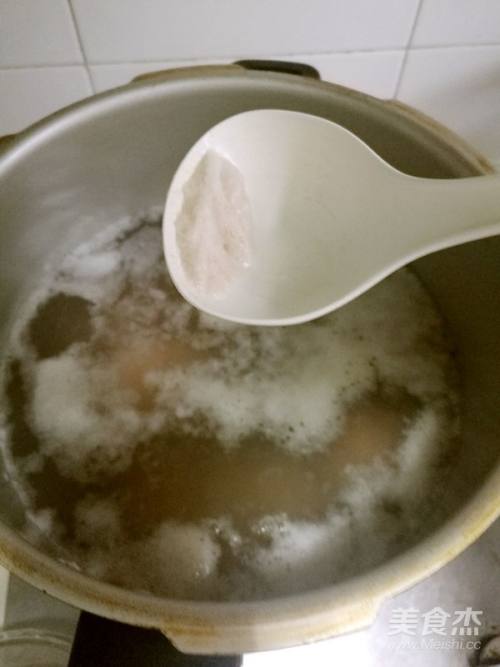 5煮开了,把浮沫舀干净