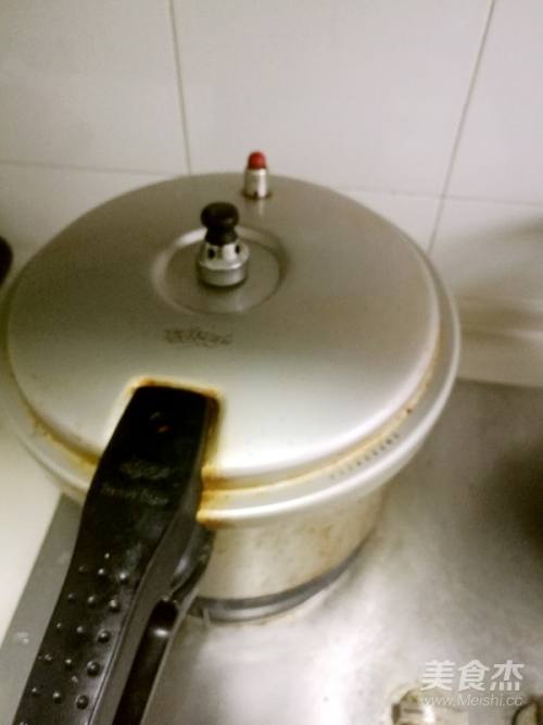 6加白萝卜,生姜片(老妈后来说这一步就错了,白萝卜很容易煮烂的,不应该和筒子骨放一起用高压锅压,应该在锅里煮好了再等筒子骨汤压好了再一起煮一下就好),盖上高压锅盖,套上高压阀,要先检查高压锅(一定哦!)