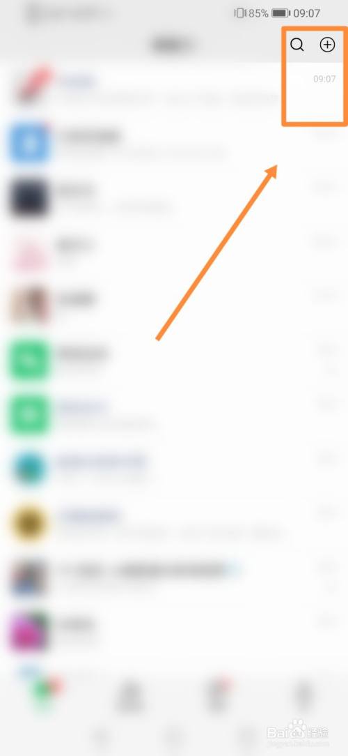 在手机上打开微信,进入到界面中,找到加号菜单,点击进入。