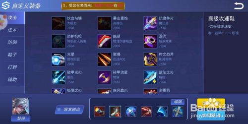 第二件装备:高级攻速鞋,可以增加攻速和移速,非常适合射手。如下图所示。