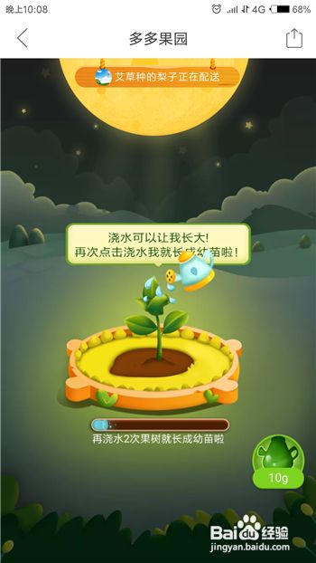 初始阶段我们接受到的只是一个小幼苗,小幼苗是在我们选择水果的品种后赠送给我们的,需要浇水才能成长。