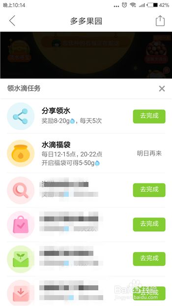 想要快速的收获水果的话必须要有足够的水滴,大家在打开水滴任务时可以看到每天获取水滴的途径,多浇水、管理果园才会快速的收获水果。