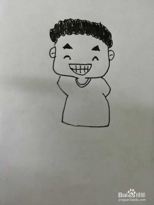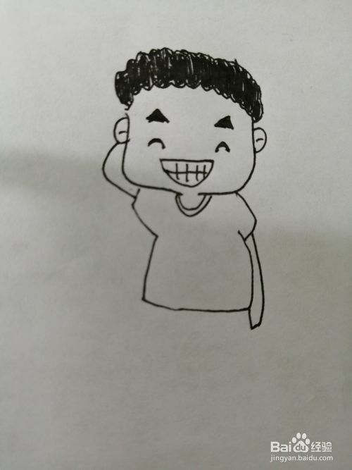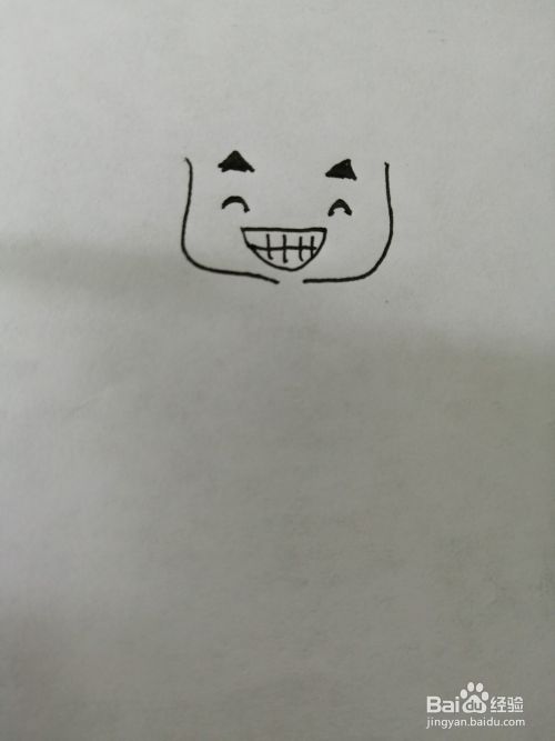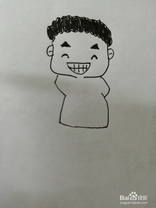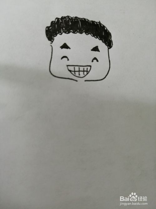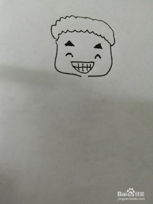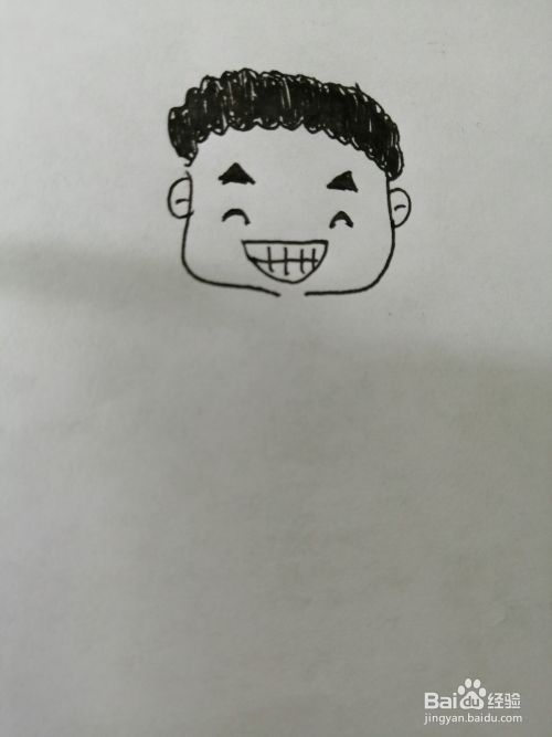 第二步,接着在可爱的小男孩的眼睛下面画出大大的嘴巴和牙齿。