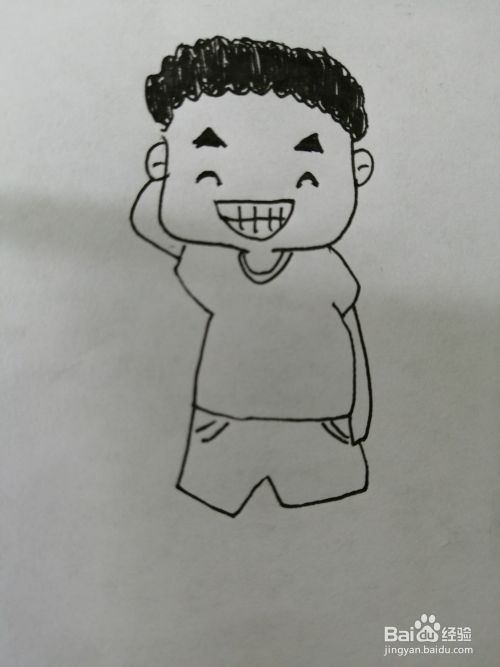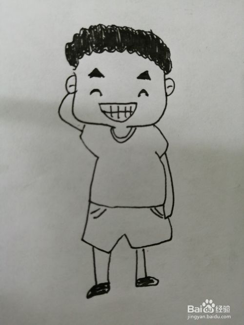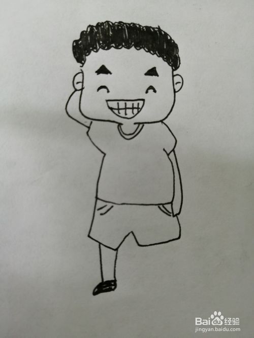 第七步,最后在可爱的小男孩的两条大长腿画出来。可爱的小男孩就画好了。