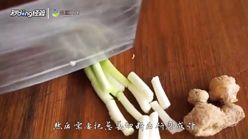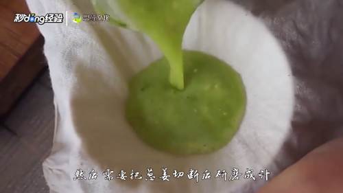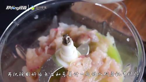 7再把腌制好的鱼肉和葱姜汁一起放入研磨机中搅碎。