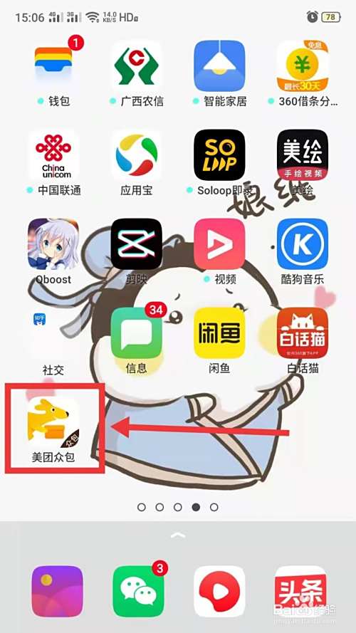 打开手机找到美团众包App图标点击进入美团众包App页面。