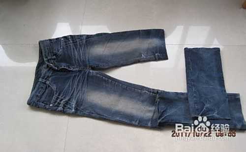 沿内缝,将剪下来的裤腿拆开,熨平备用