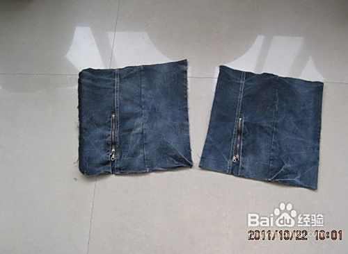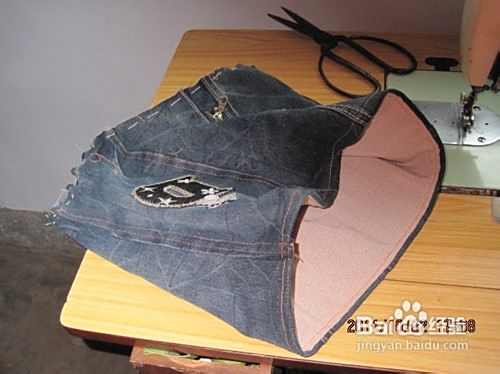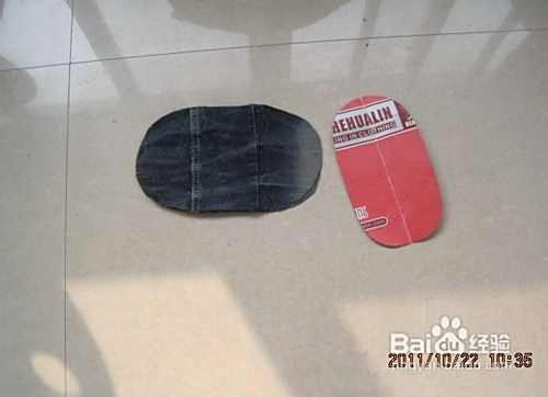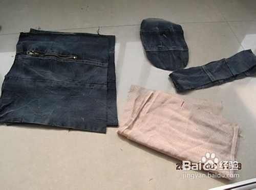 再从牛仔裤上剪个底子,周长略小于面,要两层取裤子对称且比较结实的部位