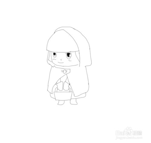 再在小红帽的手里面我们再画出小红帽的小提包,如图所示: