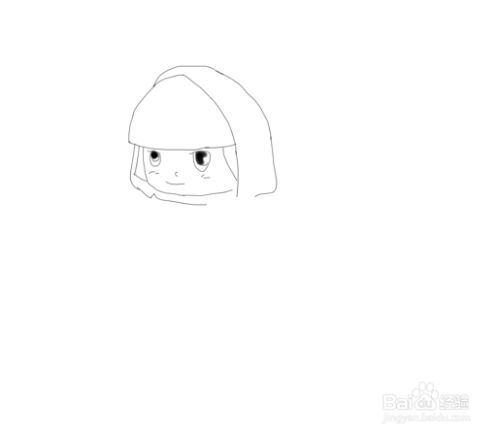 再画出小红帽的面部,然后再画出面部两侧的头发,如图所示:
