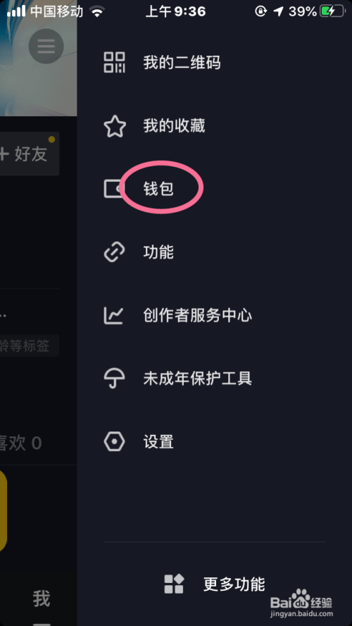 打开更多菜单中点击【钱包】选项