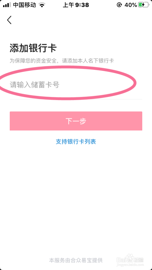 来到添加银行卡的页面中按步骤操作【填写银行卡信息、手机验证码等】。