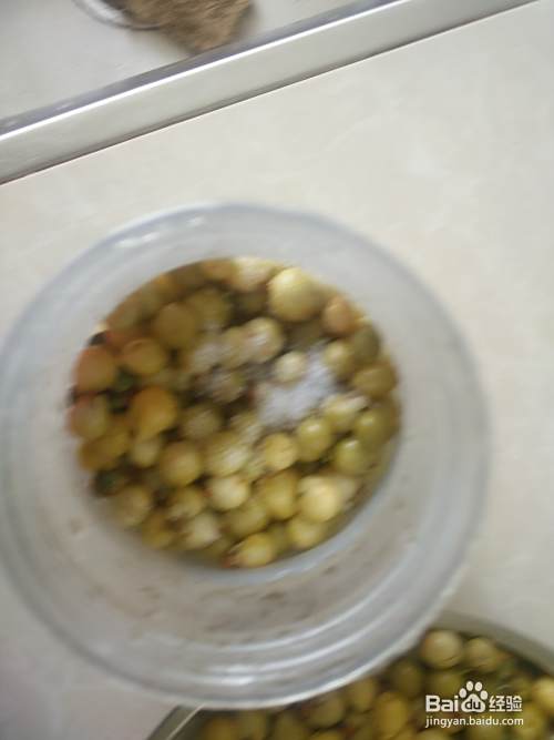 一层果散一抓盐,如此反复装好后密封起来,密封一个月左右就腌制好了。