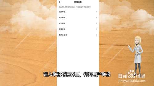 进入举报场景界面,打开用户举报,点击垃圾广告、售卖假货等。