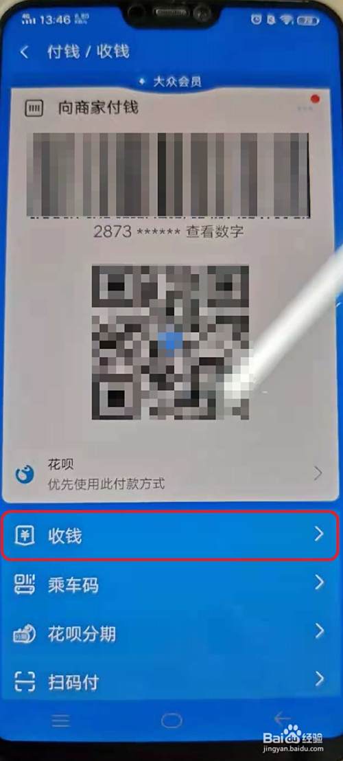 第四步,然后回到支付宝的主界面当中,在界面的顶部找到【付钱/收钱】功能,并点击进入。