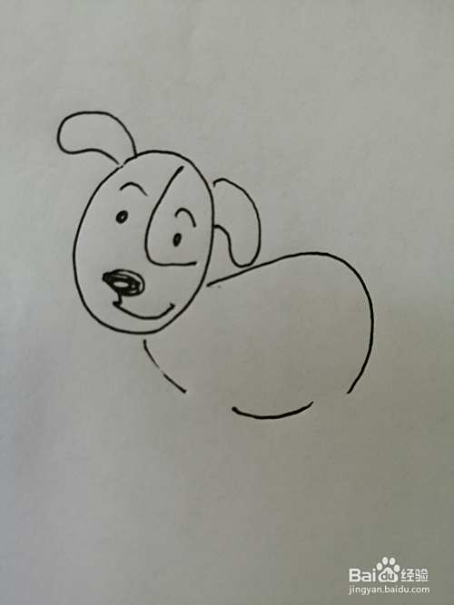 第五步,然后继续画出可爱的小狗的椭圆形的身体,身体画法比较简单。