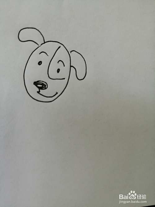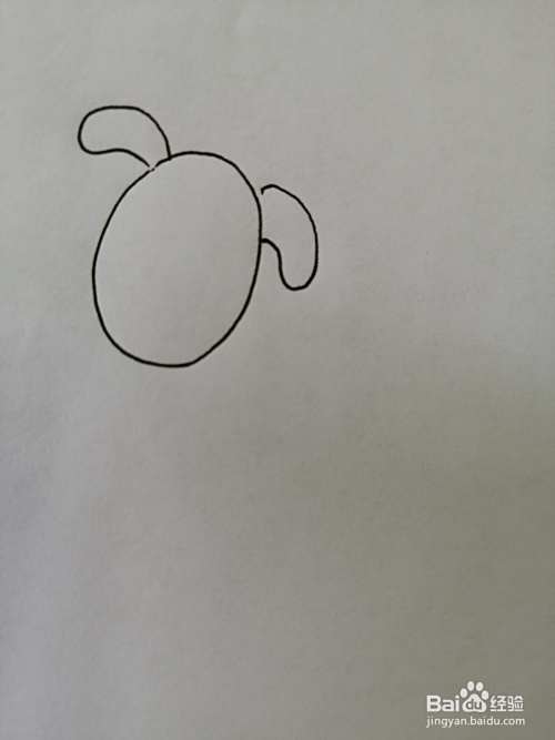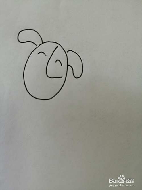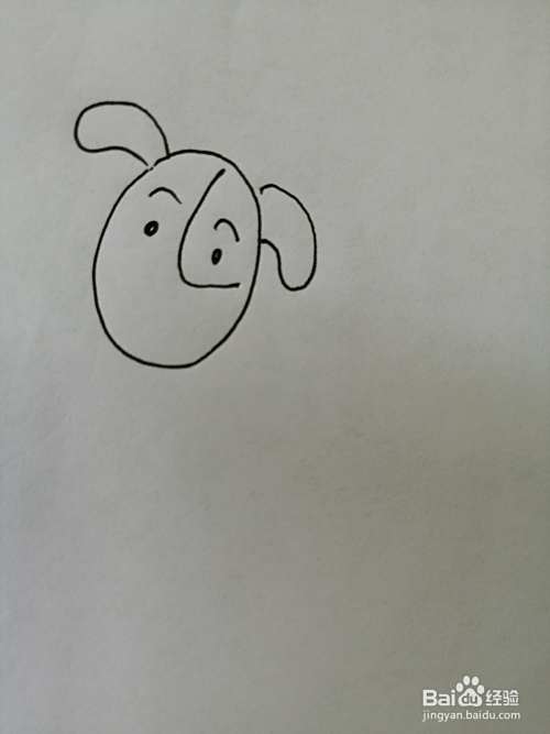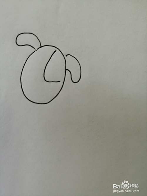 第一步,我们先把可爱的小狗的头部画出来,注意小狗两只可爱的耳朵的画法。