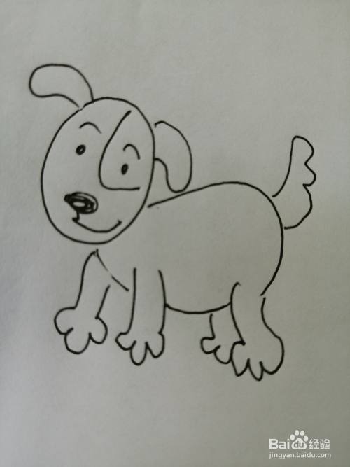 第七步,最后把可爱的小狗的小尾巴画完整。简笔画可爱的小狗就画好了。