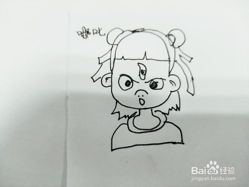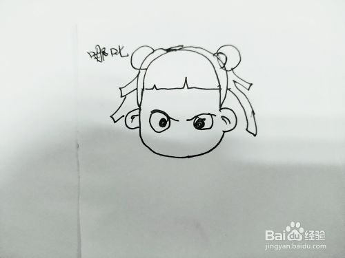 然后我们接下来继续画小哪吒的头发丝带和眼睛部分。如下图