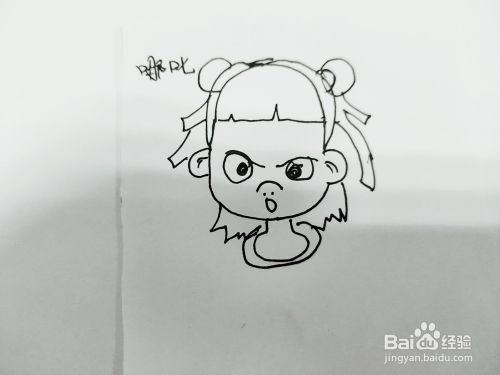 然后我们继续来画小哪吒的嘴巴部分。如下图