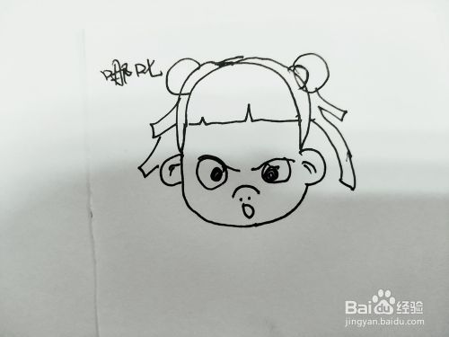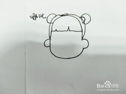 然后我们来画小哪吒的脸部轮廓,包括耳朵部分也勾勒出来。如下图