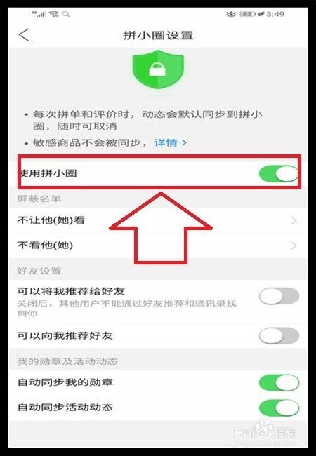 当然如果自己根本不想使用【拼小圈】的功能,可以直接在【使用拼小圈】后的圆圈内点击一下,关闭,变成灰色状态。