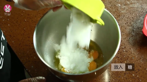 9碗中加入吉士粉,牛奶,搅拌均匀。
