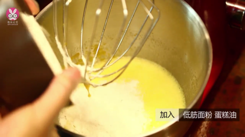 5先用慢速拌至面粉拌匀后用中高速搅拌,将面糊搅拌至稍微变白,成酸奶样的流动状即可。