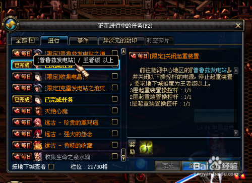 进入地下城“普鲁兹发电站”,选择“王者级别”
