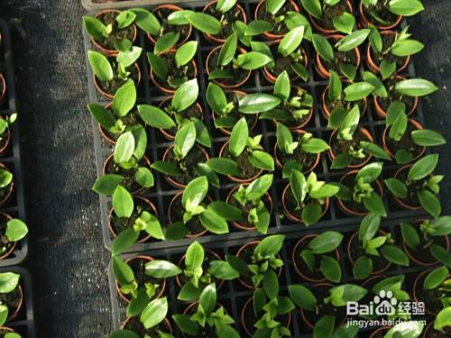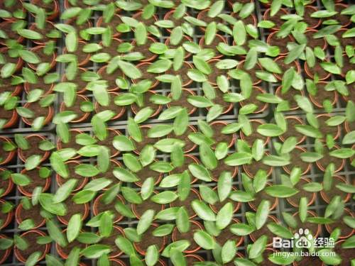 扦插:在A-90盆内插上三片叶,叶片大小尽量要一致;三张叶片呈螺旋状均匀地平铺于盆土表面,叶片的基部稍微与盆土接触。扦插完后,喷一次叶面水,目的是为了防止刚扦插的叶片萎焉。