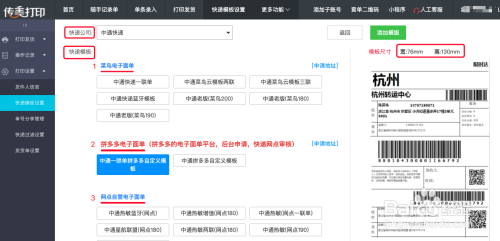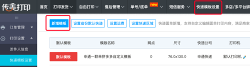 需注意:按照购买的热敏纸大小,创建对应尺寸快递模板
