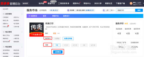 首选需要订购传美打印,拼多多服务市场搜索传美打印即可免费订购体验