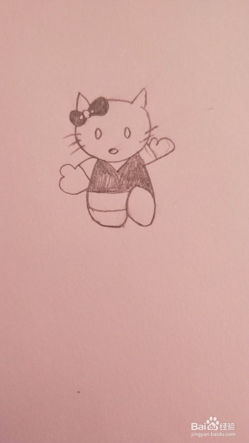 如图,用铅笔把猫咪的衣服和尖尖的耳朵涂上黑色调。