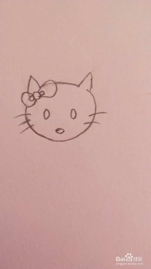 如图,在小猫咪的头上画出一个漂亮的蝴蝶结。