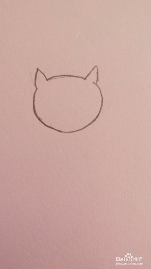 如图,先画出小猫咪的面部轮廓,然后再在头上画出两只尖尖的耳朵。