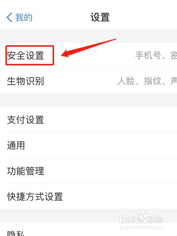 1.进入支付宝我的页面点击设置,点击安全设置。