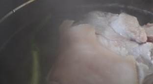 煮好的肘子稍晾一下后去骨,晾干肘子表面的水汽。