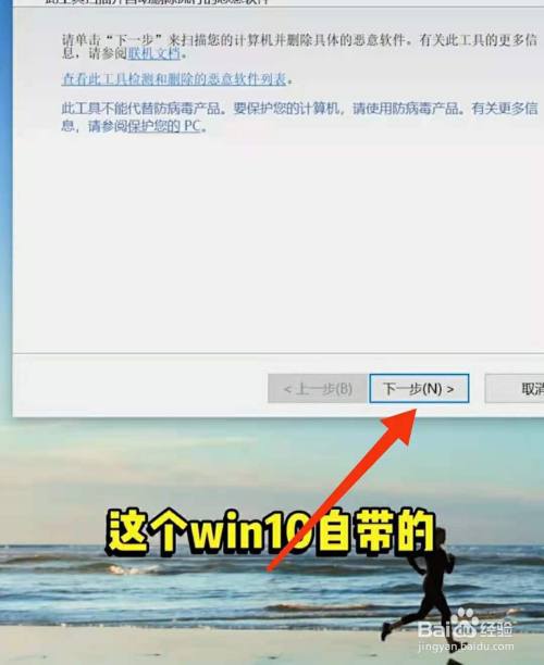 然后就可以打开Win10自带的恶意软件工具,点击下一步